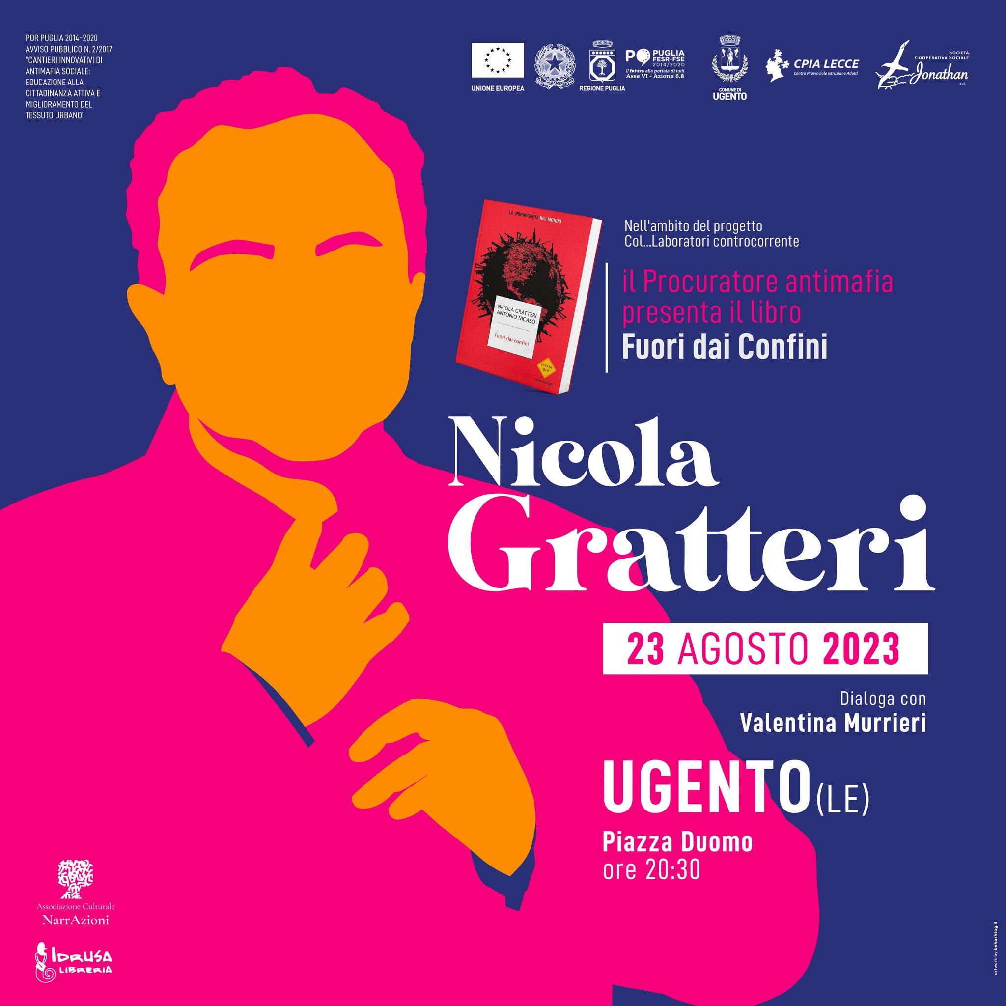 Il Comune di Ugento, nell'ambito del Progetto “Col…laboratori Controcorrente, Avviso Pubblico N.2/2017 - Cantieri innovativi di antimafia sociale”, con grande onore ospita il dott. NICOLA GRATTERI.