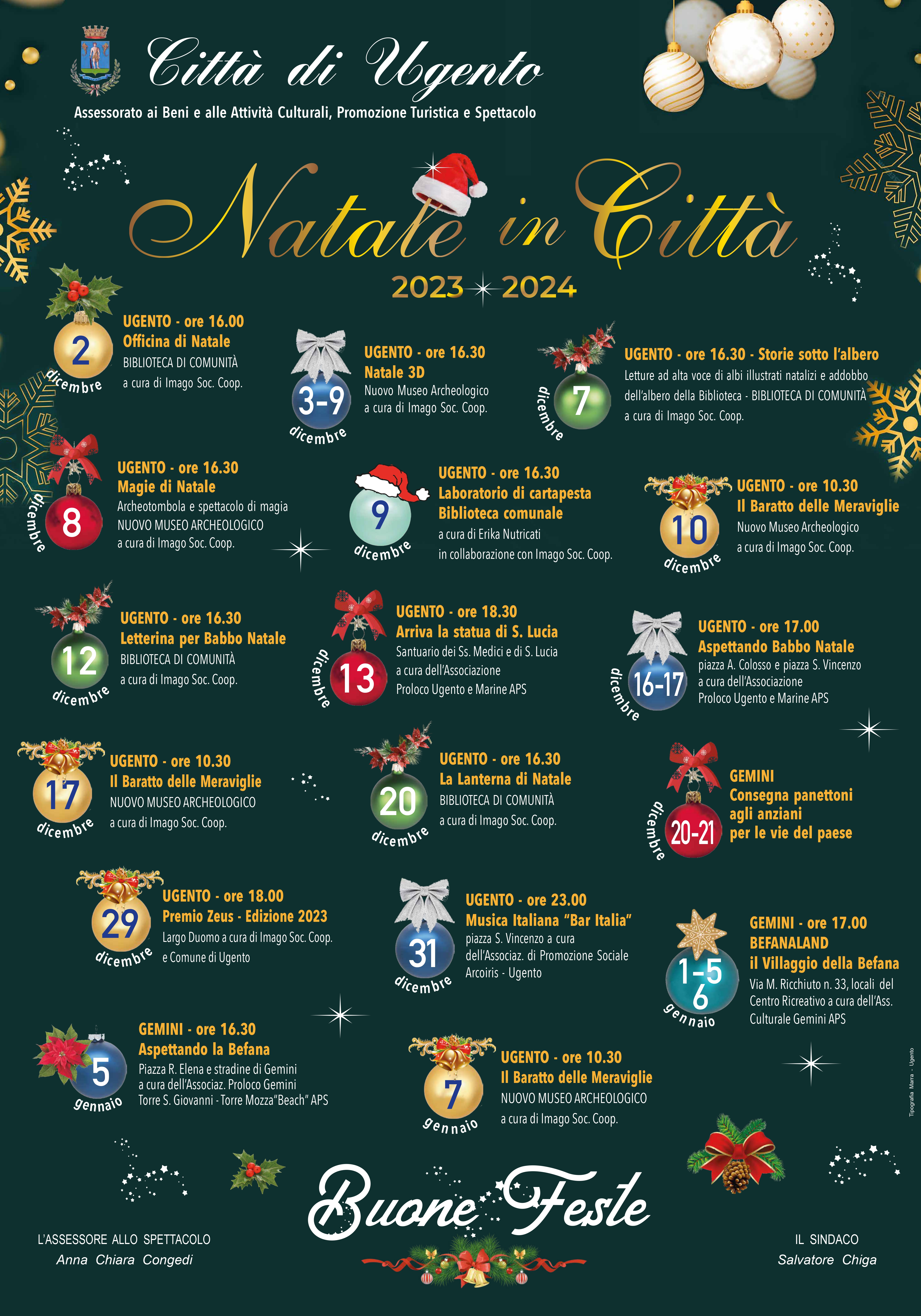 Calendario di iniziative natalizie a cura del Comune di Ugento in collaborazione con le associazioni del territorio e la cooperativa Imago