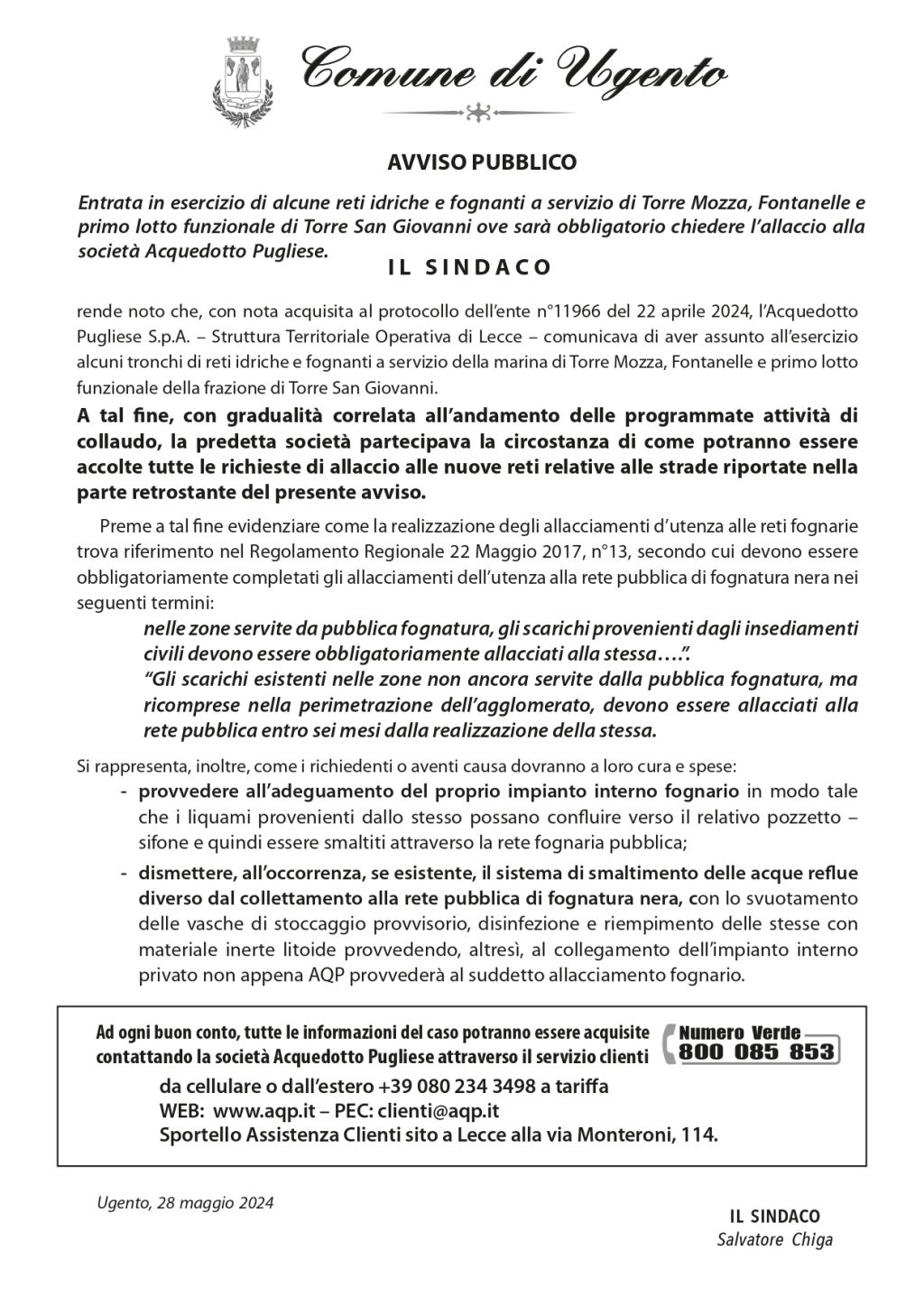 AVVISO PUBBLICO: Entrata in esercizio di alcune reti idriche e fognanti