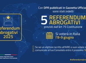 Consultazioni referendarie dell'8 e 9 Giugno 2025. Opzione voto in Italia per cittadini residenti all'Estero