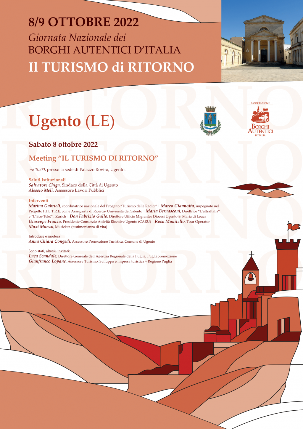 Giornata Nazionale Borghi Autentici d’Italia 2022 - Meeting sul tema “IL TURISMO DI RITORNO” previsto per il giorno 8 ottobre 2022, ore 10.00 presso la sede di Palazzo Rovito, Ugento.