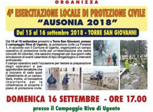 4a Esecitazione Locale di Protezione Civile " Ausonia 2018 " dal 15 al 16 settembre c.m.